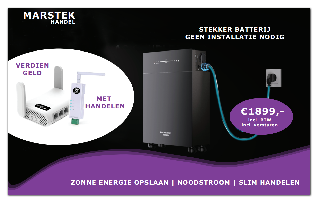 Bestel de plugin Marstek thuisbatterij inclusief de EasyEMS sturing om te kunnen handelen.